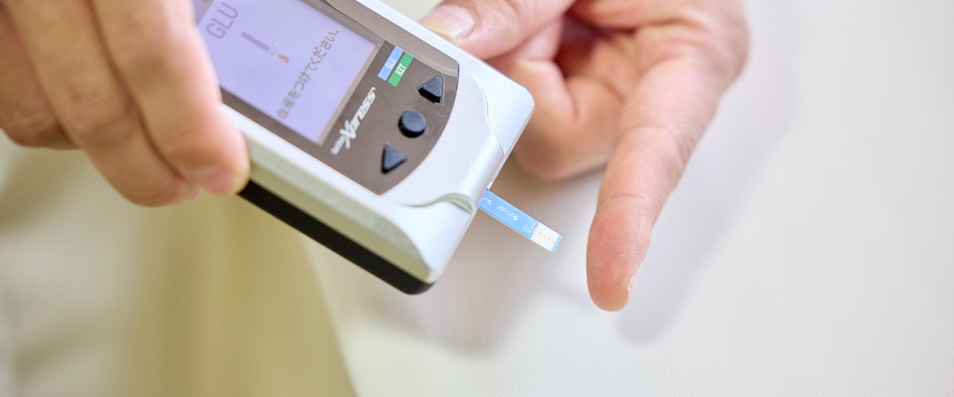 1~2ヶ月の血糖値の平均を反映するHbA1cは、1分以内に結果が判明します。